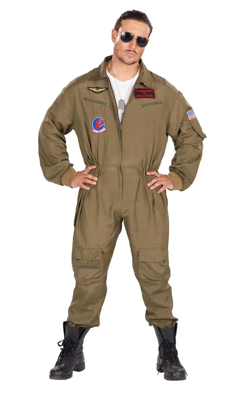 The Adult Fighter Pilot Aviator Costume is suitable for both men and women and is made up of an all-in-one jumpsuit that can be zipped down. Classic air force greens and iconic aviation badges are proudly displayed across the front of the costume. All you need to complete the Maverick and Goose look is a pair of dog tags and some sturdy boots.