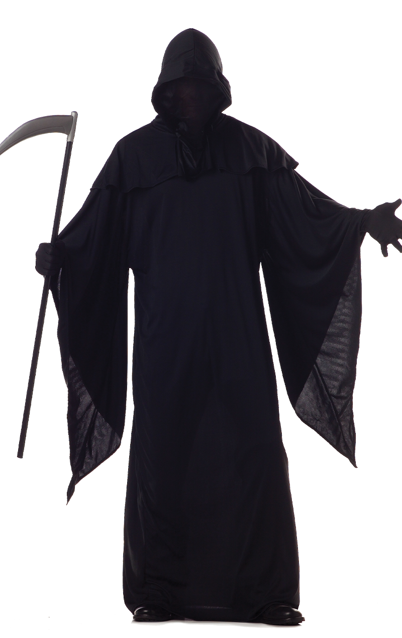 The Adult Horror Robe Grim Reaper Costume features a floor-length black robe with long bat-wing sleeves and hood. To make sure you look just the part, we’ve also included a black face mask, taking your scary look to the next level this Halloween! Don’t forget to add a Grim Reaper scythe to finish this classic but effective fancy dress costume.