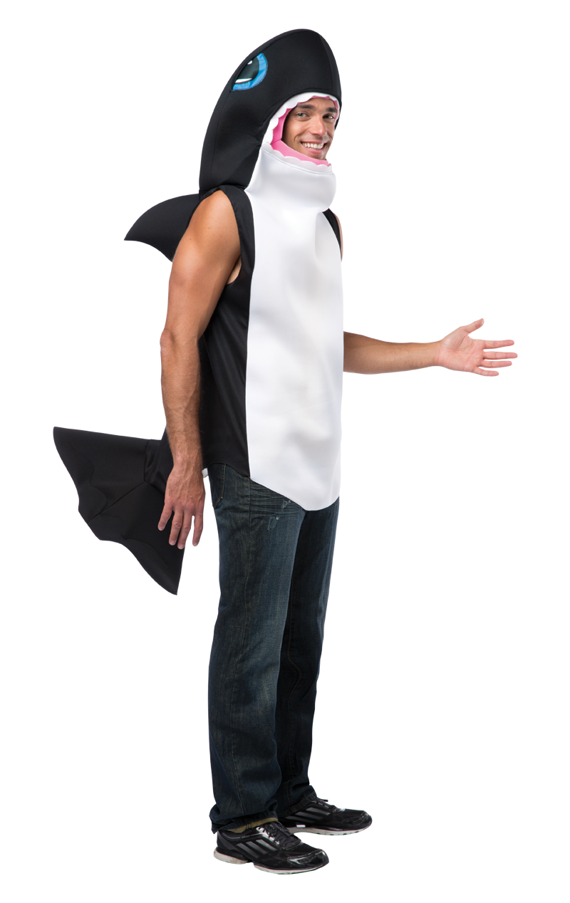 This Killer Whale Costume costume includes a light weight suit that goes over your own clothes. Fins and tail are attached. Other accessories are available separately.