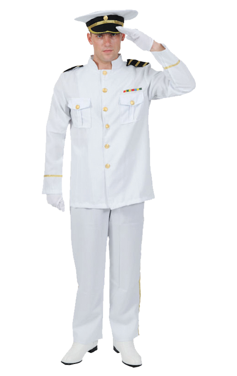 The Adult Naval Costume is made up of a smart white jacket with gold button detailing, as well as gold and blue lapels. The costume also includes a matching pair of white trousers and an officer’s hat, so everyone will know you mean business.