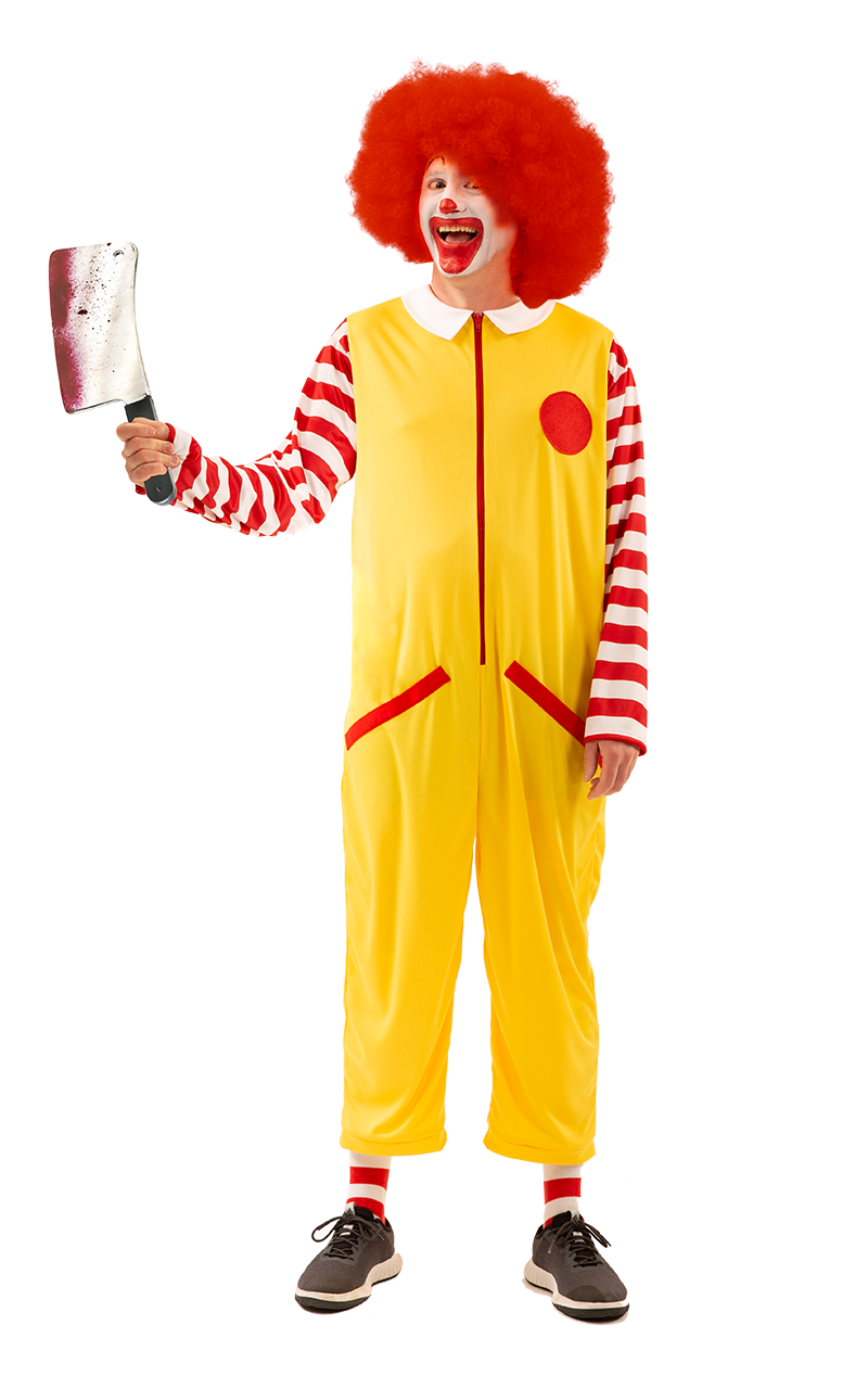 It’s everyone’s favourite clown! If you’re a burger fan or a chicken nuggets lover, the Adult Ronald Clown Costume is the perfect outfit for you! Jump into the shoes of this lovable but kind of creepy red-haired clown! Paint on a huge smile and dish out the nugget goodness to all! This outfit features striped socks and a zip-up onesie. It’s great for Stag Do’s, food-themed parties and even Halloween – just add a little blood for a scary Ronald Mcdonald Costume!