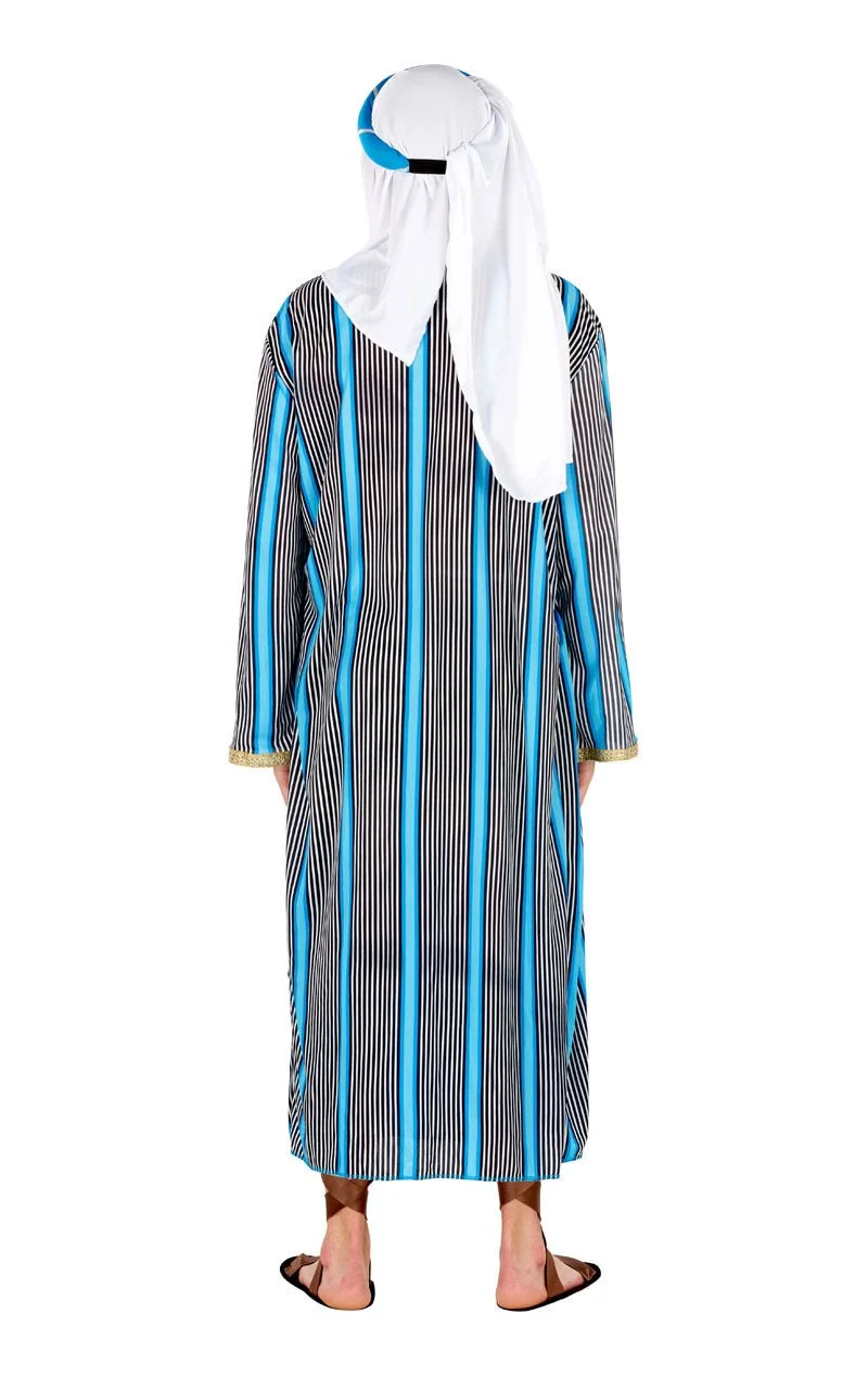 The Adult Three Wise Men Blue Costume comes complete with an all-in-one bright blue caftan with a white rope belt. It also features an attached jacket featuring black and white stripes, with gold and blue detailing on the sleeves. To complete the look, put on our flowing white headpiece with a blue band. You have everything you need to transform into one of the Three Wise Men!