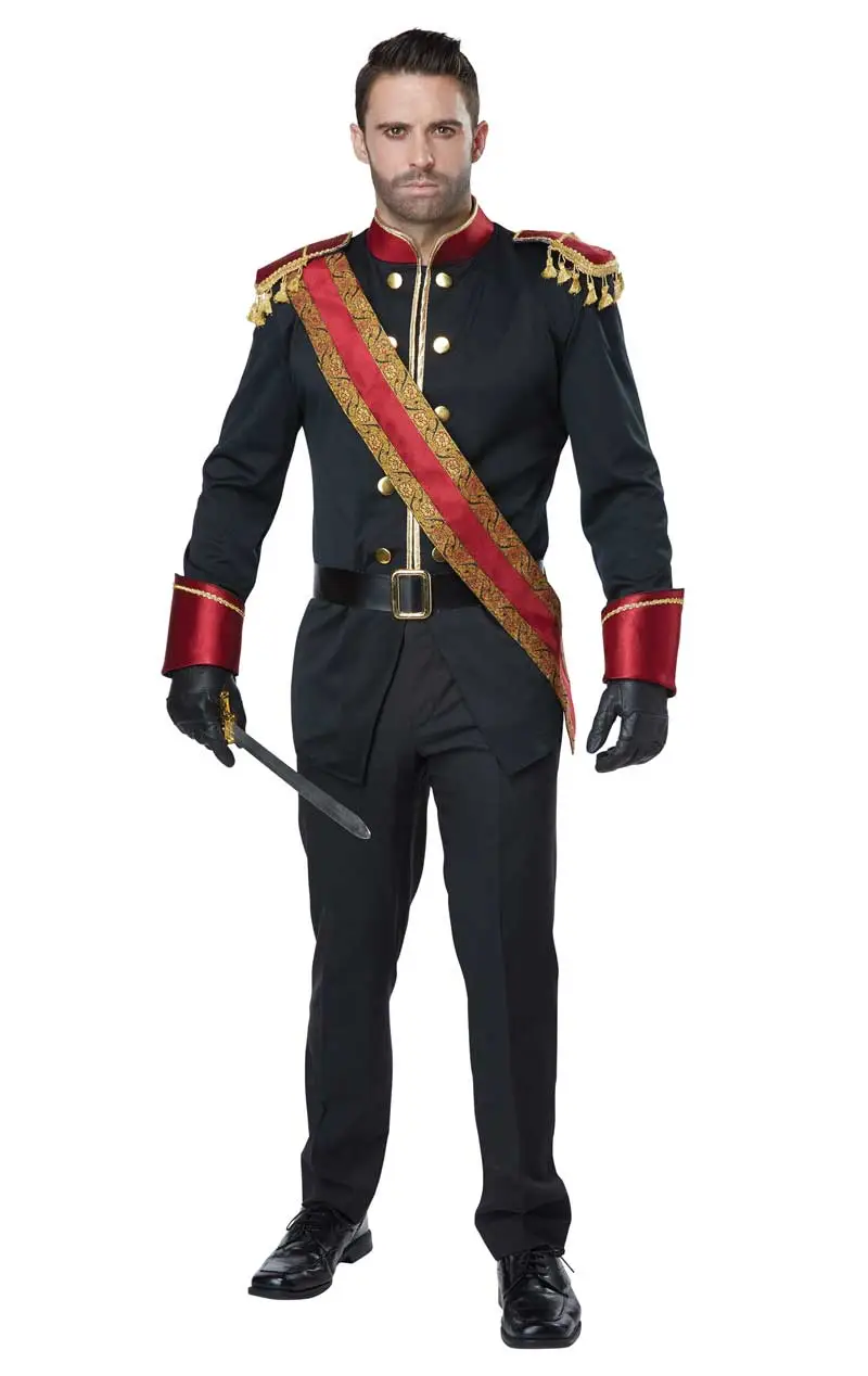The Mens Dark Prince Costume comes complete with a long sleeve, black button up jacket with detachable red and gold shoulder epaulets. To finish off this royal look, it also includes a matching sash that’s worn over the jacket, and finally, a simple and stylish black and silver buckle belt. To transform you from nice to evil, why not add some dark makeup underneath your eyes? Practice your most menacing glare and prepare to act out at the party.