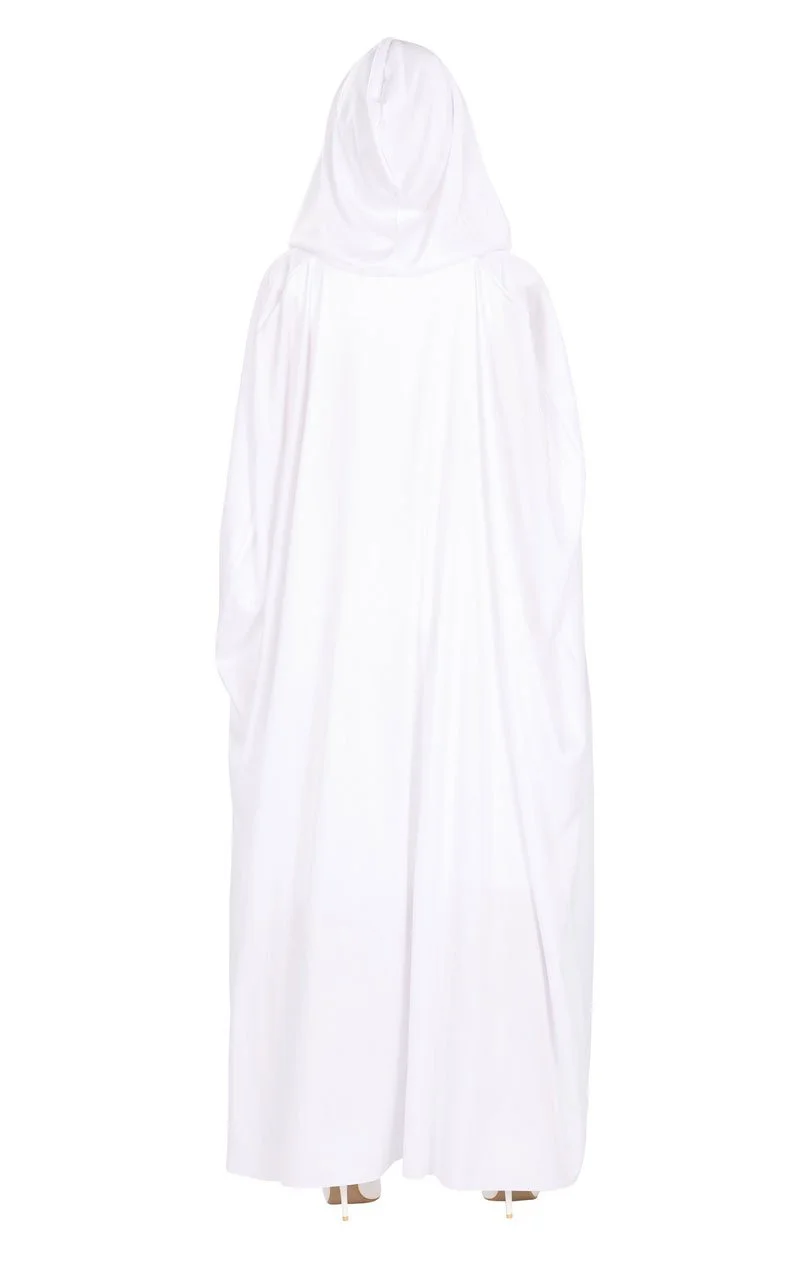 Don this Unisex White Hooded Cape and conceal your identity! It’s the perfect costume accessory for anyone that’s dressing as a ghost, wizard, angel, sorcerer; or any other creature or character that conceals their body with a glowing white cloak. It makes a quick and easy costume for Halloween – simply wear it over your normal clothes and add face-paint and accessories.