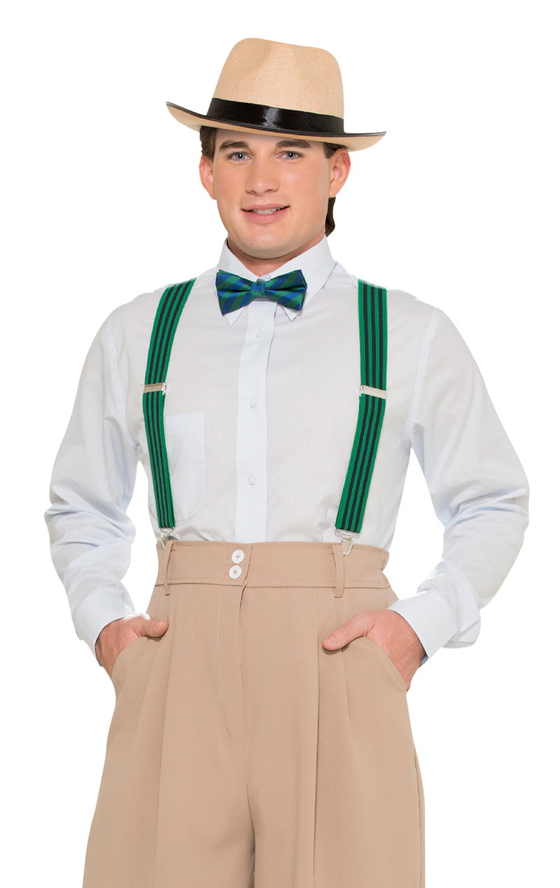 Whether you just want to hold your trousers up, or just using them for the style, these Green Striped Braces are the perfect accessory for many decades of fancy dress fashion!