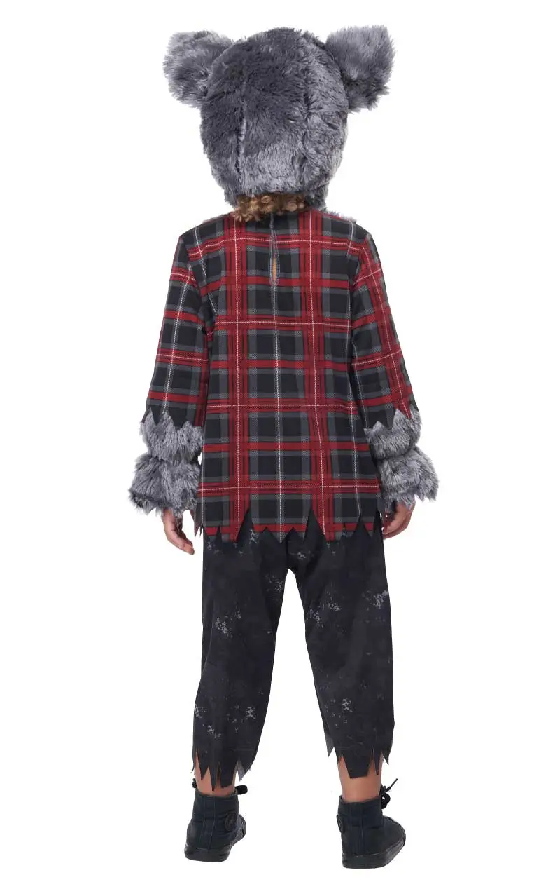 It comes complete with ripped trousers, a checked print lumberjack shirt and a pullover headpiece. The fur arms and fluffy ears of our kids werewolf costume will look great on any Halloween night! All you need to complete the fearsome werewolf look is a little bit of face paint.