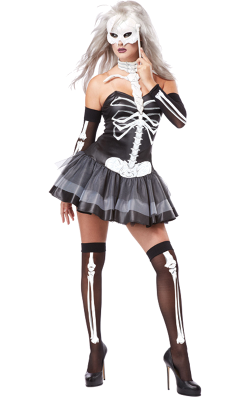 If you want to cause quite a stir at that Halloween party, then make no bones about what you will wear and dress to impress in our Ladies Skeleton Masquerade Costume! This look is sexy, scary, and ghoulish, all-in-one, and is a fun modern take on a traditional skeleton costume.