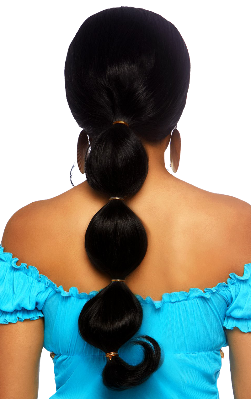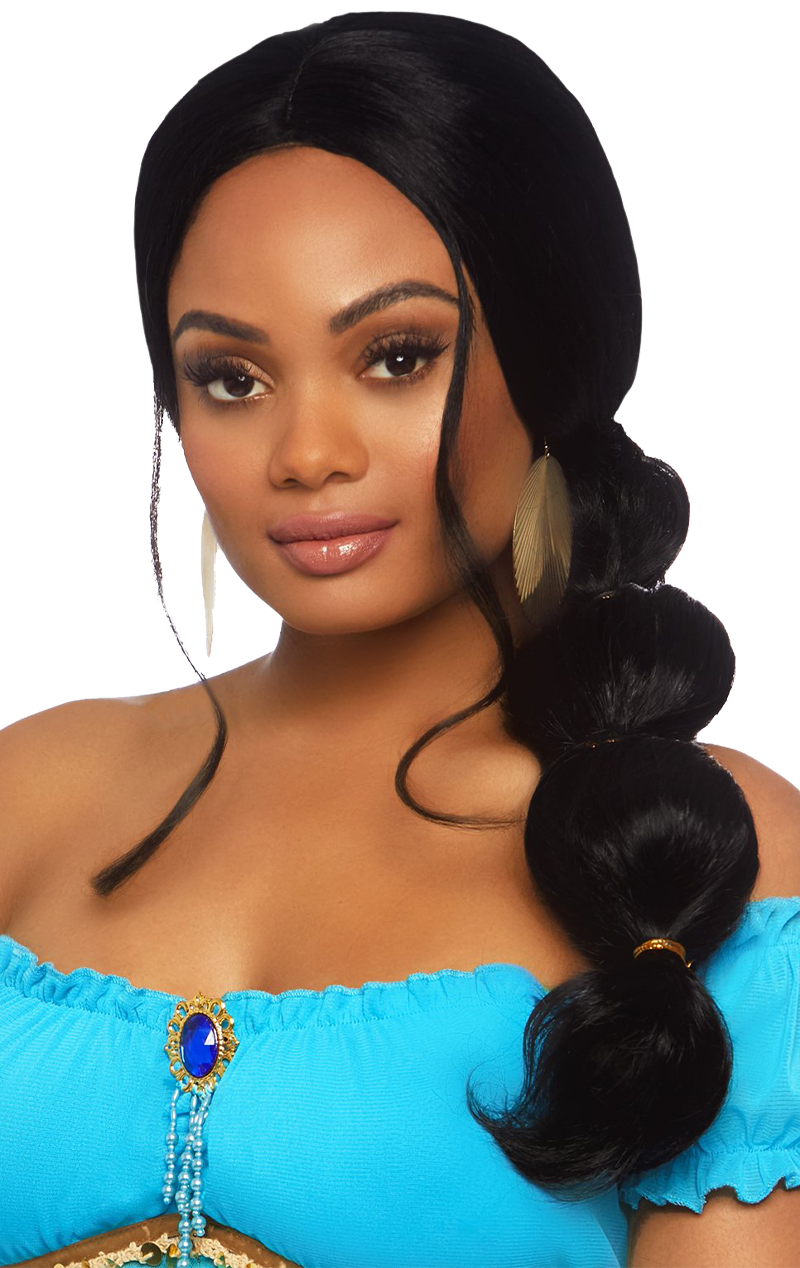 Enter a whole new world, and a whole new hairstyle, with this Jasmine Princess Wig. It’s inspired by the 1990’s animated Disney classic movie, Aladdin. This Arabian princess of Agrabah had beautiful, long flowing locks tied back in multiple bands. This one features replica gold bands and reaches 26” in length. Combine it with your costume for the ultimate Disney princess look!