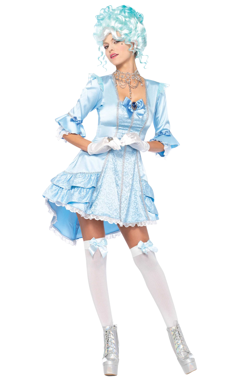 This French beauty has a timeless elegance! She is graceful, fairylike and striking. Be that girl that turns heads at the fancy dress party with the authentic and ethereal Versailles Beauty costume! Featuring a powder blue dress with a layered ruffle hem, jewel satin bow accents and a pin on back bow.