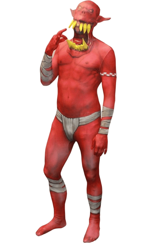 Turn up the fear factor this Halloween with our Mens Jaw Drop Red Morphsuit Orc Costume. Bright red and perfectly terrifying, this original Halloween Morphsuit will have people raising their pitch forks! Even if you don’t want to be a fantastical Orc, this costume could easily serve as the devil himself, or one of his many scary demons.
