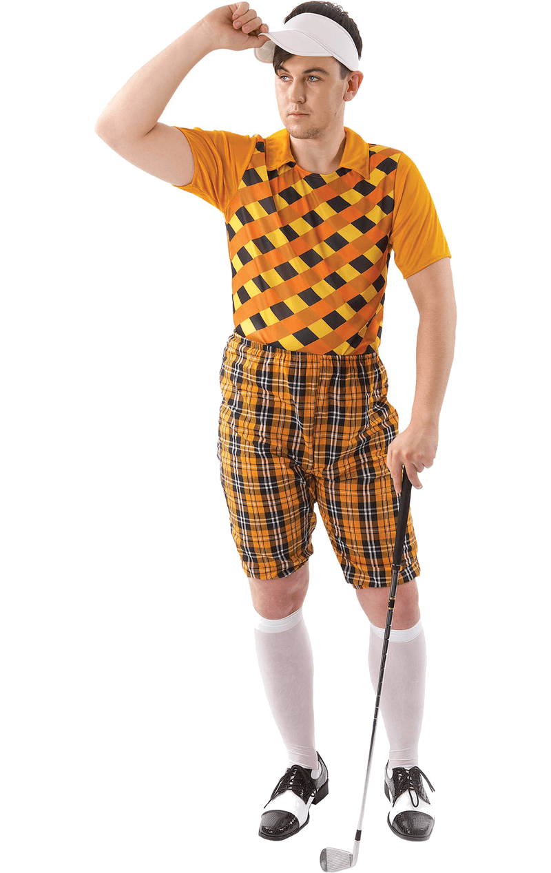 Grab your club and make sure your cap is tightly fastened! Our Mens Pub Golf Costume – Orange is sure to prove to everyone that you’re a true professional!