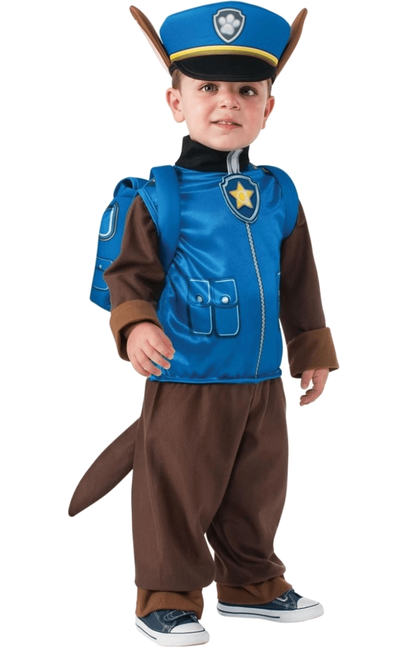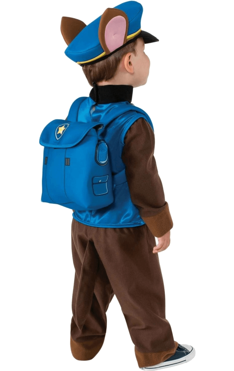 Join the puppy ‘pawlice’ in the officially licensed Chase costume from Paw Patrol. This costume includes a long jumpsuit with attached tail, backpack and matching hat.