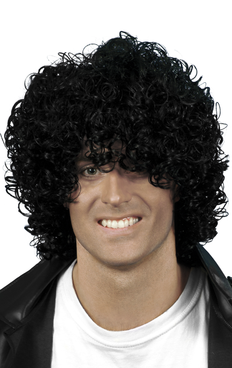 The Afro Wig is black with loose afro style, this looks as if it has a lot of product in it giving it a wet look.