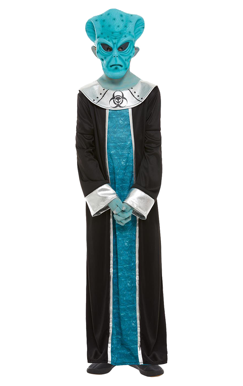 Your little one can transform into the ruler of the UFOs in this Kids Alien Lord Costume, perfect for Halloween trick-or-treating or space fancy dress parties. This costume features a blue alien facepiece and a black, blue and silver full-length robe. This kids space costume is so simple and easy, and ensures your child will be getting best picks out of the Halloween sweets!