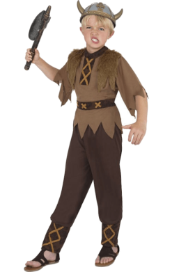 This Kids Viking Boy Costume comes complete with a brown top with ragged sleeves and cross detailing on the front. It also features a pair of dark brown trousers with cross stich detailing at the bottom. If your child wants to go all out, then why not purchase a steel helmet and a toy axe?