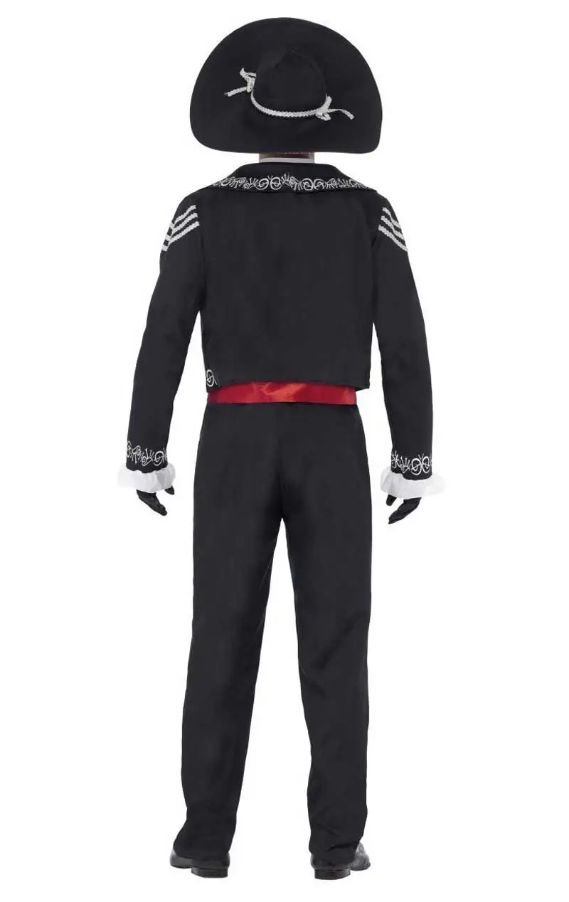 The Senor Bones Costume includes patterned trousers, a jacket, matching sombrero, a mock shirt with attached bow tie and a red waist tie. As a mens Day of the Dead costume, it’s perfect for Halloween or Day of the Dead celebrations and parties! All you need extra is some black and white face paint and someone with the skills to create a cool sugar skull design, the iconic style of Day of the Dead. Going to the Halloween party with your lady friend? Check out the accompanying Senorita Muerta costume and walk hand in hand as un-dead amigos! The Senor Bones Mens Day of the Dead costume is one of our top-rated Halloween fancy dress outfits!
