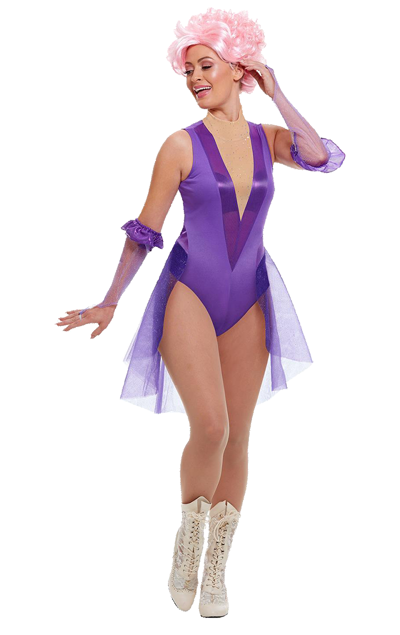 Get the Greatest Showman look for your next fancy dress party or Halloween with the purple Womens Anne Wheeler Circus Showman Costume in the style of Zendaya’s trapeze leotard from The Greatest Showman. This purple leotard features a netted purple half skirt, and nude diamond plunging mesh neckline and full-length matching gloves. Get the ultimate group the Greatest Showman costumes when teaming up with your other circus buddies, including a ringmaster, tattooed lady, strong man and more! You’ll be swinging on the ropes and rewriting the stars with Zac Efron in no time – fingers crossed!