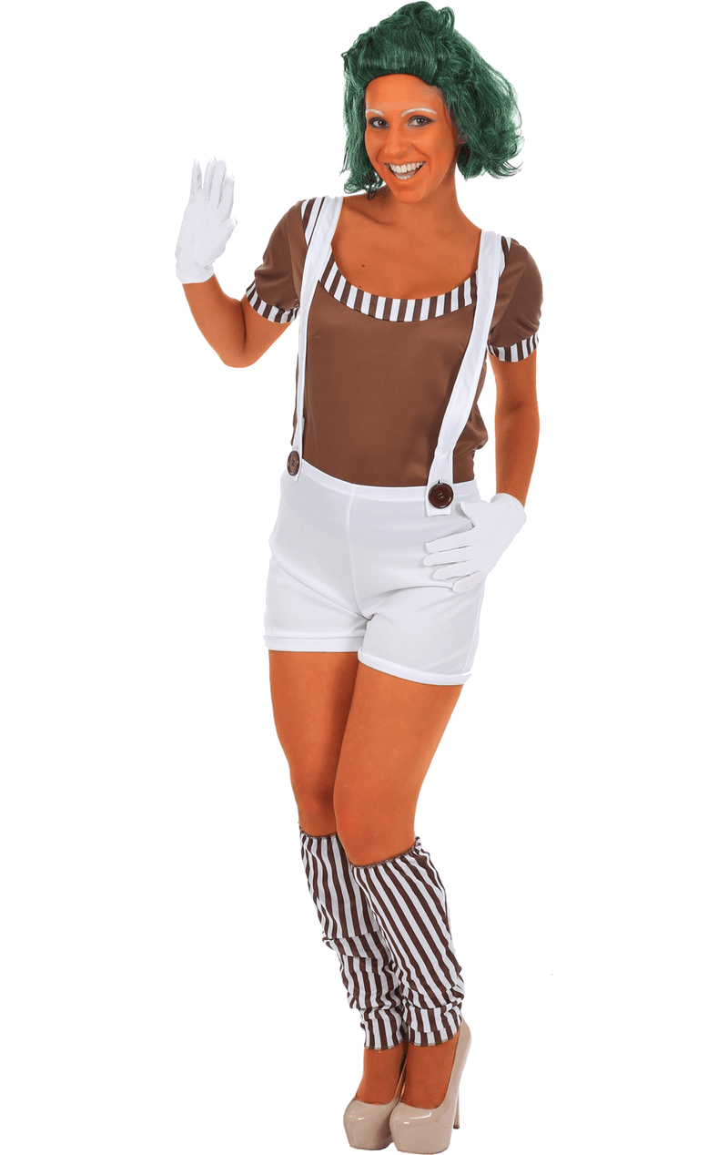 Cartwheel your way out of Charlie’s Chocolate Factory and into the party in this Womens Oompa Loompa Costume. Team up with other Loompa’s or find Willy Wonka and get partying!